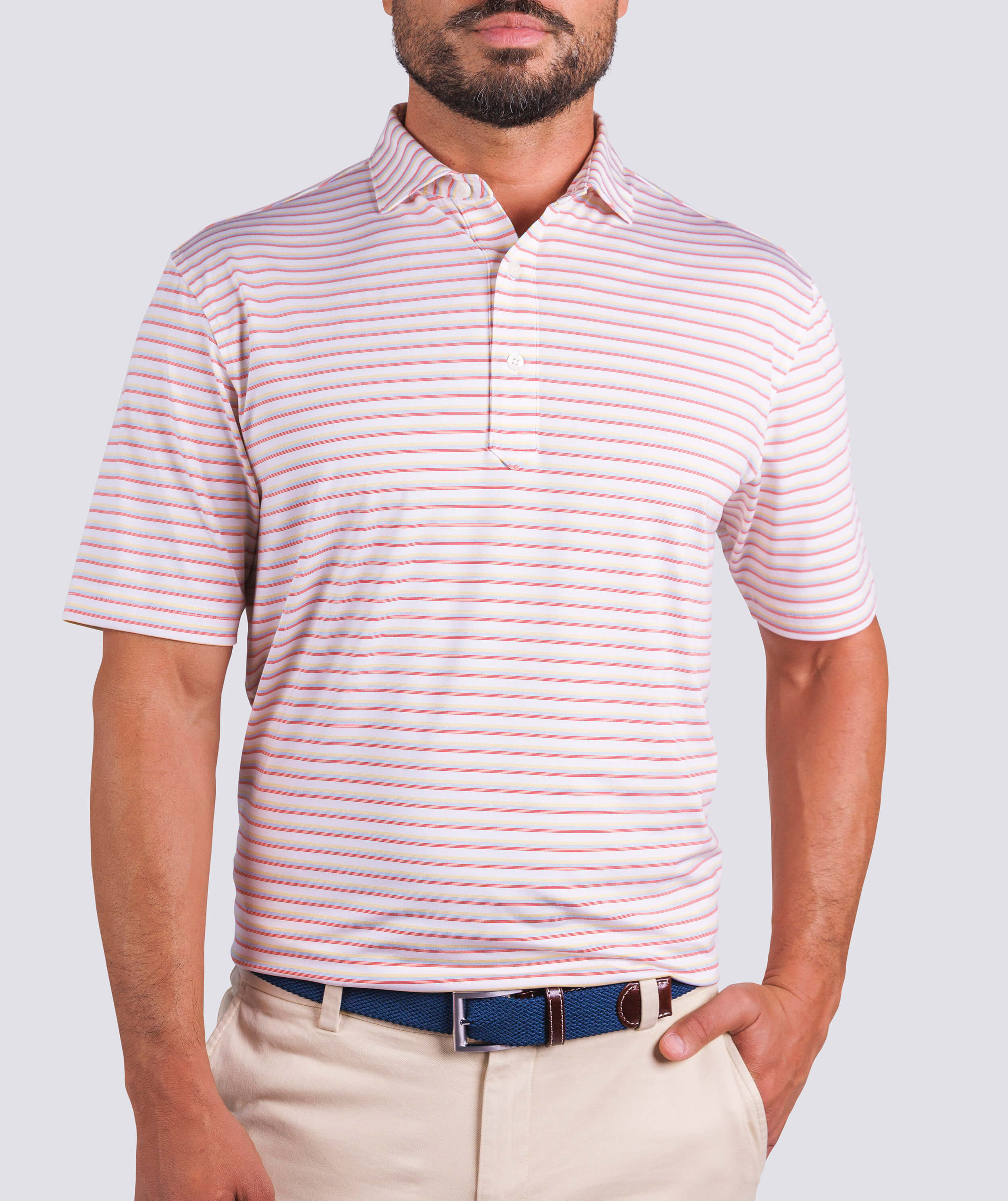Putting a modern spin on a classic three-color stripe, the Lanier Gradient Stripe Performance Polo delivers a soft, clean look while still making stunning use of color. With four-way stretch and moisture-wicking properties, this polo is up for any adventure.